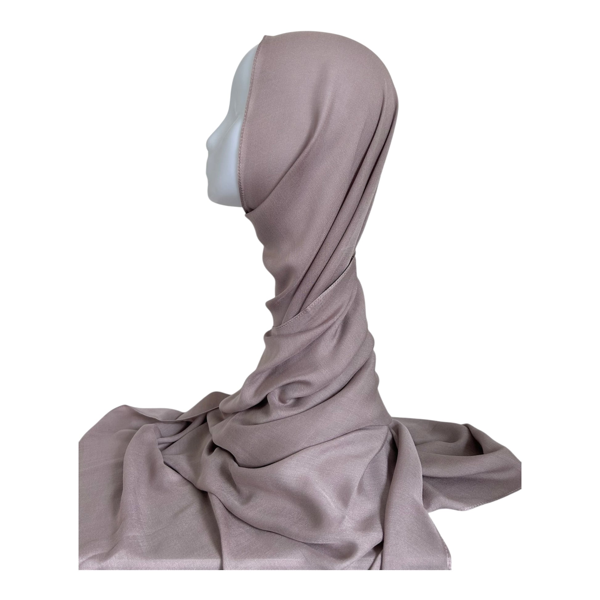 Die seidige, matte Textur sorgt für einen edlen Look, während der Stoff rutschfest und flexibel ist. Ob für den Alltag oder besondere Anlässe – dieser Hijab bietet eine ideale Balance zwischen Stil und Funktionalität.